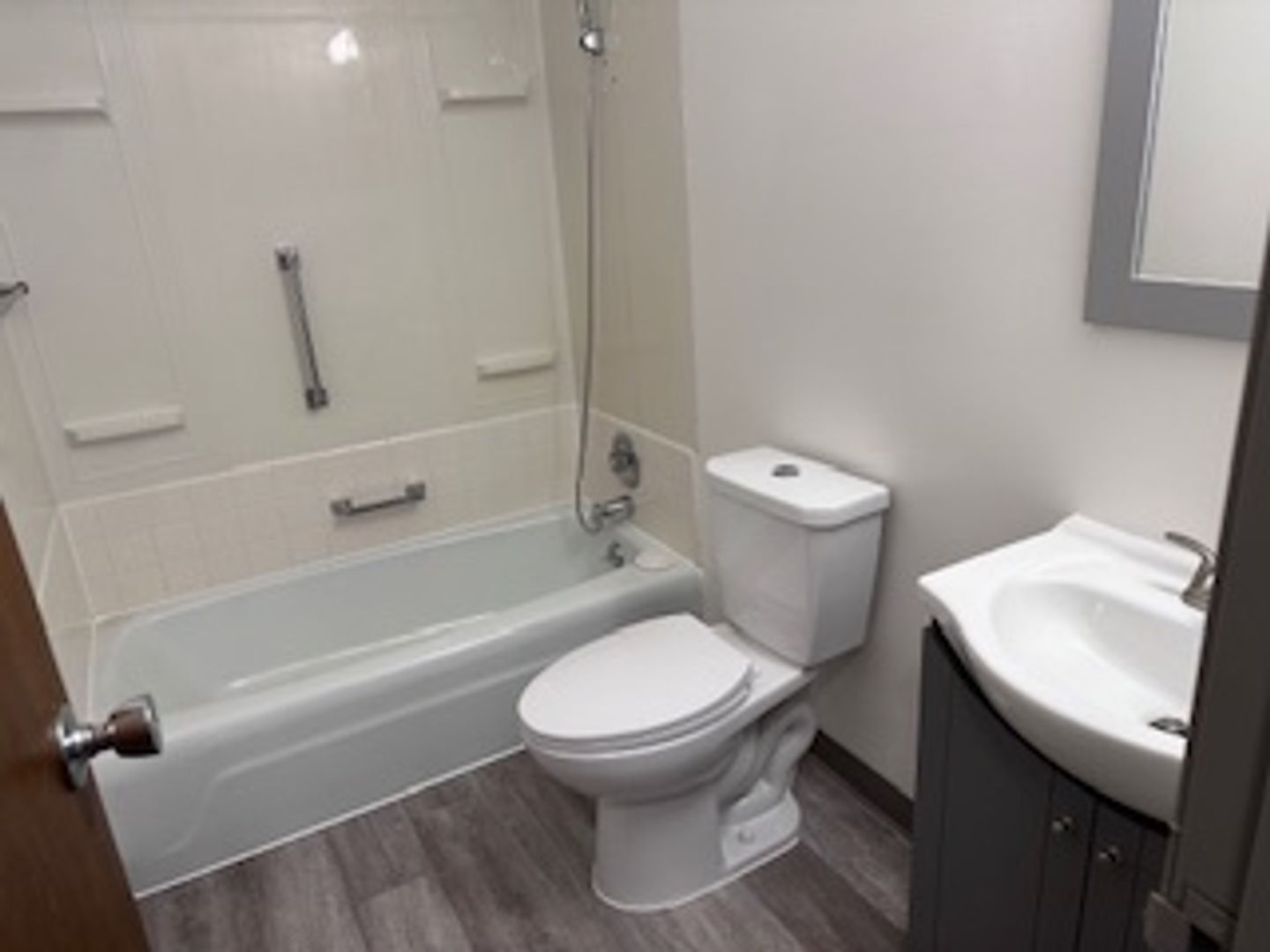 The bedroom promises restful nights with its new vinyl hardwood plank flooring and plush carpeting. For those who love to cook, the kitchen, adorned with rich cabinetry, awaits the culinary enthusiast, turning every meal into a delightful experience.